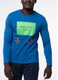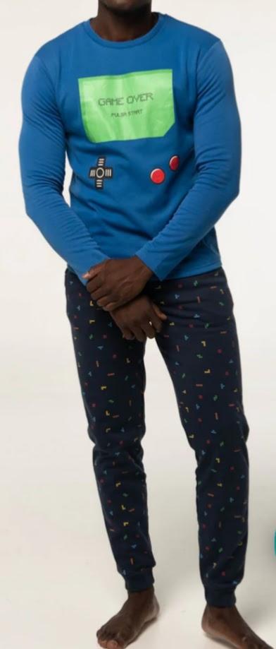 Pijama  algodón manga y pantalón largo. Camiseta cuello redondo y estampado en el pecho. Acabado muy suave y agradable al tacto con interior afelpado. Lleva un poco de elastano que le da más elasticidad a la prenda. Medida para un talla M: ancho entre sisas: 52 cm. Largo: 68 cm.